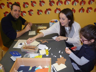 As famílias presentes na Biblioteca Municipal ouviram o conto "Eu não fui!" de Christian Voltz e realizaram a oficina de trabalho criativo construindo originias livros de artista com materiais reciclados.
